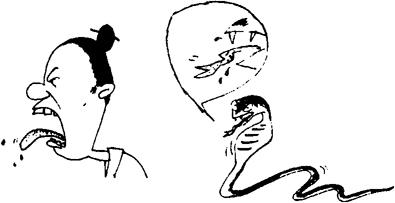 舌的本义就是舌头。甲骨文的舌字,下面的口是嘴的象形,从嘴中伸出来并带有口液的东西,就是人的舌头。《说文解字》:“舌,在口所以言也,别味也。”人的舌头有两大功能:发音说话和辨味,所以与说话和食味有关的字多从舌,如舐、舔、甜等。