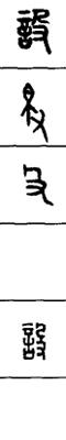 从上到下依次是小篆、甲骨文、金文、古玺及战国文字、缪篆及汉代文字、鸟虫篆。