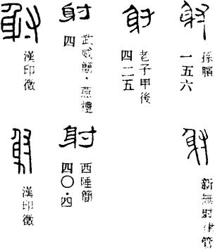 【说明】“射”本为会意字,表示以手射箭意。参附录三。