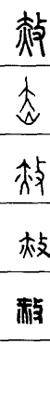 从上到下依次是小篆、甲骨文、金文、古玺及战国文字、缪篆及汉代文字、鸟虫篆。