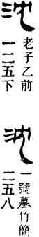 ㈠shěn ①古国名。在今河南汝南东南。②姓。③汁。《礼记·檀弓下》:“为榆沈。”郑玄注:“以水浇榆白皮之汁。”