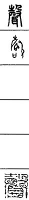 从上到下依次是小篆、甲骨文、金文、古玺及战国文字、缪篆及汉代文字、鸟虫篆。