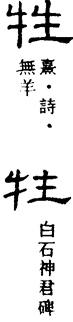 shēng 《广韵》:牺牲。 所庚切 梗开二平庚生