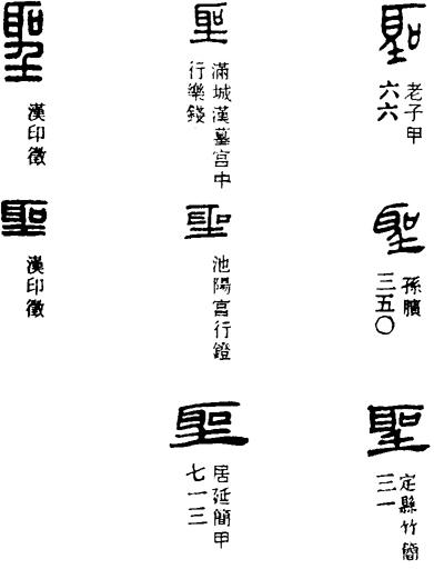 ,王弼本作聲。郭店楚簡本《老子》乙簡一二:“大音祗(希)聖。”聖馬王堆帛書《老子》乙本、王弼本皆作聲。郭店楚簡《五行》簡一九~二〇:“金聖而玉晨(振)之,又(有)惪(德)者也。金聖,善也……□又(有)惪(德)者,肰(然)句(後)能金聖而玉晨(振)之。”郭店楚簡本《老子》丙簡五:“視之不足見,聖之不足惟(聞),而不可既也。”郭店楚簡《性自命出》簡二三:“凡聖,其出於情也信。肰(然)句(後)其内(入)拔(撥?)人之心也