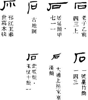 【说明】“石”为象形字,像山崖旁有石块形。参附录三。