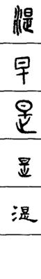 从上到下依次是小篆、甲骨文、金文、古玺及战国文字、缪篆及汉代文字、鸟虫篆。