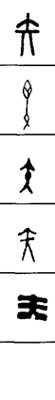 从上到下依次是小篆、甲骨文、金文、古玺及战国文字、缪篆及汉代文字、鸟虫篆。