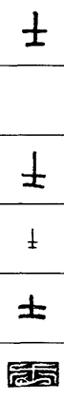 从上到下依次是小篆、甲骨文、金文、古玺及战国文字、缪篆及汉代文字、鸟虫篆。