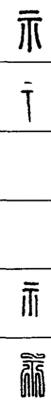 从上到下依次是小篆、甲骨文、金文、古玺及战国文字、缪篆及汉代文字、鸟虫篆。
