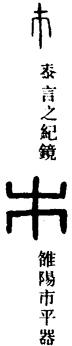 〈辨〉市字金文从之从八,表示人们到市场上分散开各干各的事;丂为声符。篆书字形讹变,从之省从冂;冂读jiōng,为扃字初文,象示市场的大门,人们到市场上去必然经过;下部是古文的及字,为声符。楷书写作市。