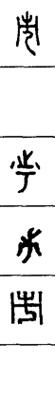 从上到下依次是小篆、甲骨文、金文、古玺及战国文字、缪篆及汉代文字、鸟虫篆。