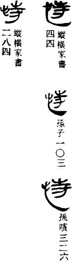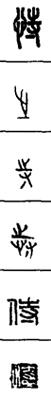 从上到下依次是小篆、甲骨文、金文、古玺及战国文字、缪篆及汉代文字、鸟虫篆。