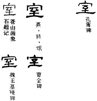 [名]①房屋。刘禹锡《陋室铭》:斯是陋室,惟吾德馨。归有光《项脊轩志》:室坏不修。②房间,内室。王羲之《兰亭集序》:晤言一室之内。陶渊明《归去来兮辞》:携幼入室,有酒盈樽。③家。柳宗元《捕蛇者说》:曩与吾祖居者,今其室十无一焉。柳宗元《捕蛇者说》:今其室十无二三焉。④妻室,家室。《礼记·曲礼上》:三十曰壮,有室。潘岳《西征赋》:鳏夫有室,愁民以乐。⑤墓穴。《诗经·唐风·葛生》:百岁之后,归于其室。韩愈《柳子厚墓志铭》:是惟子厚之室。