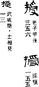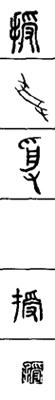 从上到下依次是小篆、甲骨文、金文、古玺及战国文字、缪篆及汉代文字、鸟虫篆。