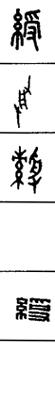 从上到下依次是小篆、甲骨文、金文、古玺及战国文字、缪篆及汉代文字、鸟虫篆。