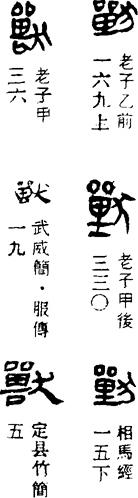 (躃)獸門。”郭店楚簡本《老子》甲簡一八~一九:“侯王女(如)能獸之,萬勿(物)