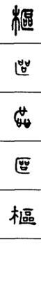从上到下依次是小篆、甲骨文、金文、古玺及战国文字、缪篆及汉代文字、鸟虫篆。