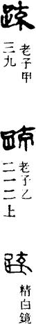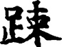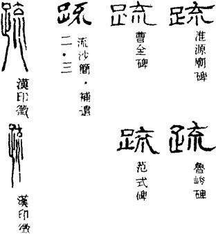 ㈠shū ①疏通;疏导。《孟子·滕文公上》:“禹疏九河。”②开拓;清除。如:疏浚。③雕刻。《文选·王延寿·鲁灵光殿赋》:“天窗绮疏”。④分;分予。如:仗义疏财。⑤撤退。《国语·晋语四》:“公令疏军而去之。”⑥疏远。如:不分亲疏。⑦粗布。《后汉书·弥衡传》:“乃著布单衣,疏巾。”⑧糙米;粗粝的饭食。《诗·大雅·召旻》:“彼疏斯粺。”⑨稀;不密。如:疏星。⑩粗疏。如:疏于防范。⑾〔通〕“蔬”。《荀子·富国》:“然后荤菜,百疏以泽量。”⑿〔通〕“疋”,赤足。《淮南子·道应训》:“子佩疏揖,北面立于殿下。”⒀姓。西汉时有疏广。