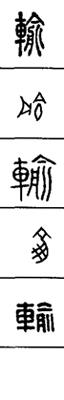 ①运送。《左传·僖公十五年》:“晋饥,秦输之粟。”(饥:年成不好。)杜牧《阿房宫赋》:“一旦不能有,输来其间。”引申为交出(财物。)《左传·襄公九年》:“魏绛请施舍,输积聚以贷。”(魏绛:人名。贷:借贷,指借贷给百姓。)《汉书·卜式传》:“式上书,愿输家财半助边。”又用于抽象意义,献出。《左传·襄公二十一年》:“昔陪臣书能输力于王室。”(陪臣:诸侯之臣对天子称陪臣。书:乘书,人名。)《三国志·蜀书·先主传》:“尽力输诚。”特指纳税。《唐书·食货志》:“夏输无过六月,秋输无过十一月。”②坠落,毁坏。《诗经·小雅·正月》:“屡顾尔仆,不输尔载。”(顾:看。仆:车夫。载:装载之物。)③败,负,与“赢”相对。《世说新语·任诞》:“桓宣武少家贫,戏大输。”(桓宣武:桓温,谥“宣武”。戏:博戏,赌输赢的游戏。)杜甫《遣怀》:“百万攻一城,献捷不云输。”(云:说。)