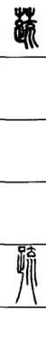 从上到下依次是小篆、甲骨文、金文、古玺及战国文字、缪篆及汉代文字、鸟虫篆。