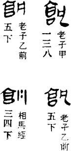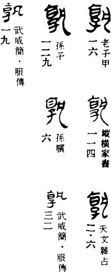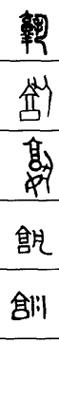 从上到下依次是小篆、甲骨文、金文、古玺及战国文字、缪篆及汉代文字、鸟虫篆。
