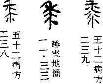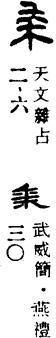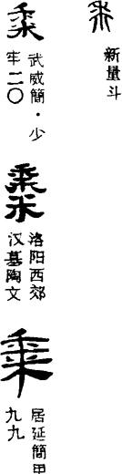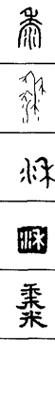 【说明】“黍”本为象形字,像黍子形。又有从“水”者,表示以水灌溉。参附录三。