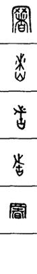 从上到下依次是小篆、甲骨文、金文、古玺及战国文字、缪篆及汉代文字、鸟虫篆。