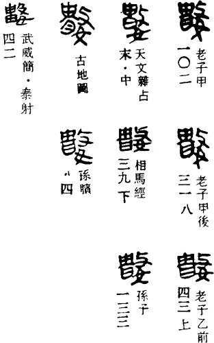 笑相從之數也?”此在傳本為《内篇雜上》第二章,明本作:“何歎笑相從數也。”影本注説數讀為速。又簡本《晏子·一三》:“晏子曰:為□□□弗為損年,數為之而毋求財官。”數影本注亦讀為速,蓋晏子告(柏常騫)速為利民之事而毋求賞賜與官職。又銀雀山竹簡《孫子兵法·九地》:“聽〔□□〕之情主數也,乘人之不給也。”十一家本作:“曰先奪其所愛則聽矣。兵之情主速,乘人之不及。”按《莊子·人間世》:“以為棺槨則速腐。”釋文:“速,向、崔本作數。”