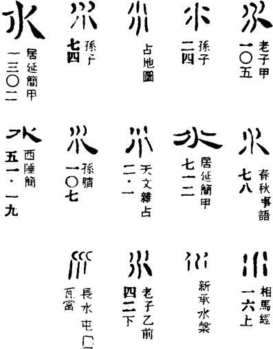 【说明】“水”为象形字,像水流之形。参附录三。