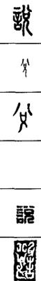从上到下依次是小篆、甲骨文、金文、古玺及战国文字、缪篆及汉代文字、鸟虫篆。