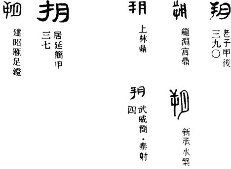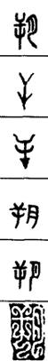 从上到下依次是小篆、甲骨文、金文、古玺及战国文字、缪篆及汉代文字、鸟虫篆。