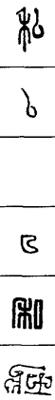 从上到下依次是小篆、甲骨文、金文、古玺及战国文字、缪篆及汉代文字、鸟虫篆。