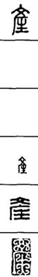 从上到下依次是小篆、甲骨文、金文、古玺及战国文字、缪篆及汉代文字、鸟虫篆。