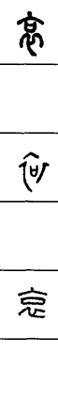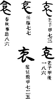 从上到下依次是小篆、甲骨文、金文、古玺及战国文字、缪篆及汉代文字、鸟虫篆。